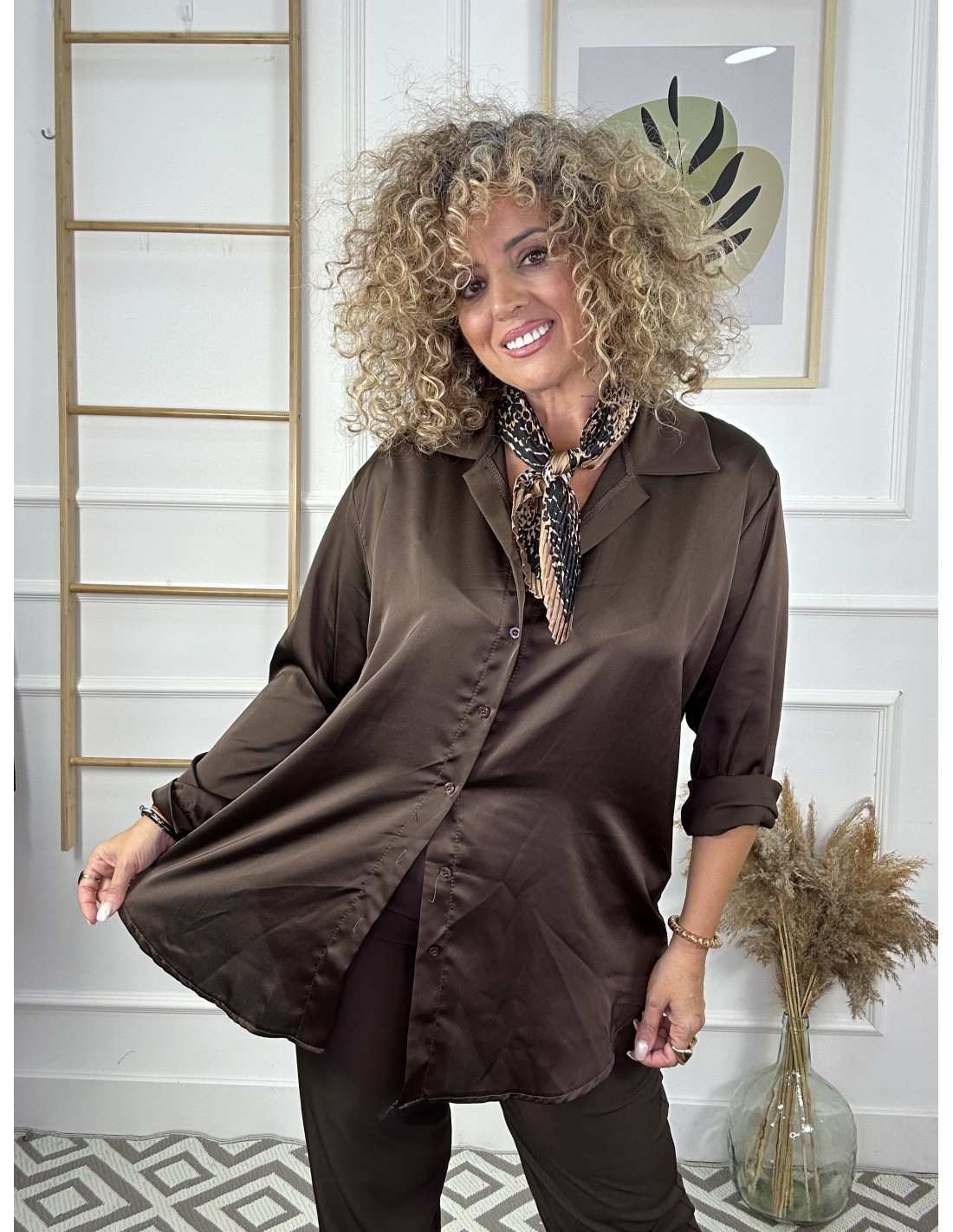 Camisa de mujer en color negro, confeccionada en tejido fluido de caída ligera.
