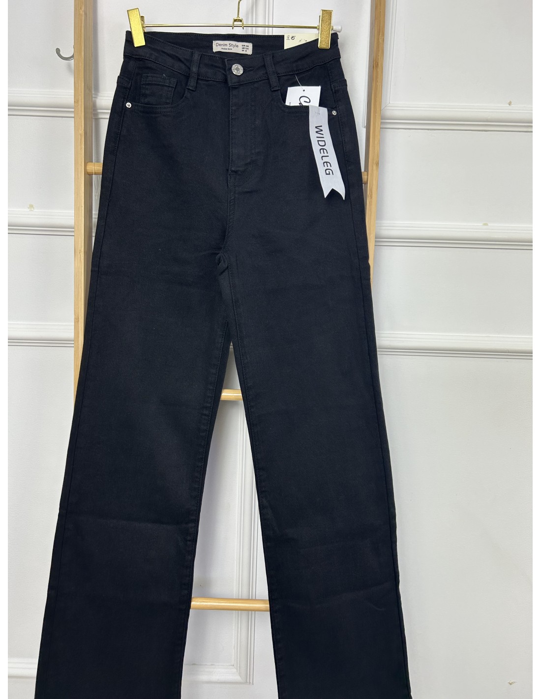 El pantalón tiene un corte wide leg (pierna ancha), lo que le da una silueta relajada y moderna.