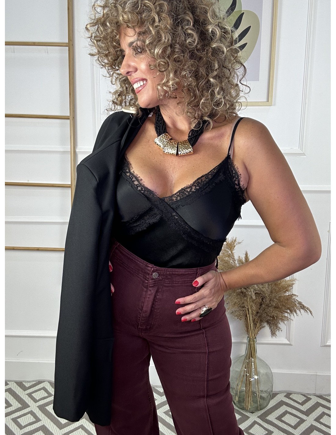 Lencera satinada escote encaje